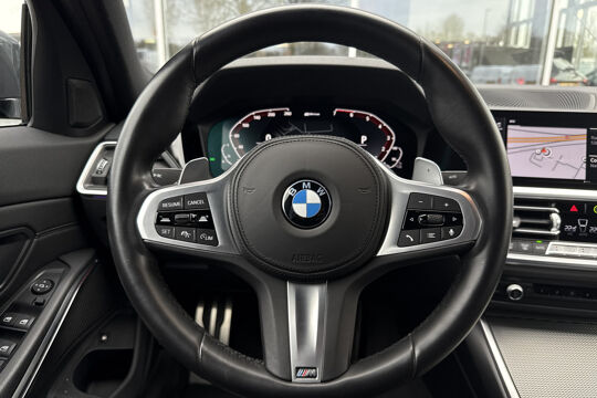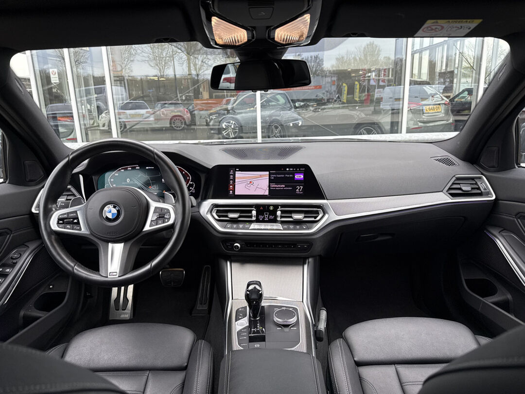 Alle benodigde informatie helder in beeld: het digitale dashboard is een geweldige rijhulp. Nooit meer problemen bij achteruitrijden of inparkeren. De achteruitrijcamera houdt alles in de gaten! Met adaptive cruise control houdt deze auto automatisch afstand tot uw voorligger. Mocht zich een probleem voordoen, dan krijgt u via remote services op uw smartphone te zien wat er precies aan de hand is, waar u ook bent. In deze 3-serie vindt u schakelaars op het stuur om het navigatiesysteem met harde schijf te bedienen en het audio-installatiesysteem met DAB-ontvangst. Ook is de BMW uitgerust met: achteropkomend verkeer waarschuwing, electronic climate control, lederen sportstuur, regensensor, automatisch dimmende binnenspiegel en centrale deurvergrendeling met afstandsbediening.