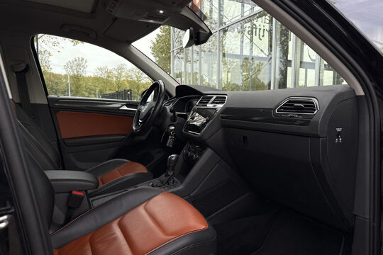 Hij zorgt voor een ontspannen rijervaring, deze Volkswagen Tiguan. Het is een auto uit 2019. Niet voor niets is de vraag naar gebruikte Volkswagens zo groot, want de kwaliteit staat ook na een aantal jaren nog buiten kijf, zoals aan deze dealeronderhouden Tiguan duidelijk te zien is. Een robuuste viercilinder benzinemotor is verantwoordelijk voor de aandrijving van deze SUV. Heerlijk comfortabel zitten, en genieten van stijlvolle kwaliteit? Deze auto heeft een fraai lederen interieur. Neem plaats op de comfortabele stoelen. Dankzij de elektrische bediening en het geheugen is het eenvoudig om hierin de beste zitpositie te vinden. Het interieur baadt in daglicht dankzij het elektrisch bediende glazen panoramadak. De elektrisch bedienbare achterklep opent met een druk op de knop. Bij de rijke uitrusting horen ook 18 inch lichtmetalen velgen, LED-dagrijverlichting, trailer assistent, donker getint glas achter, in delen neerklapbare achterbank en LED-achterlichten.