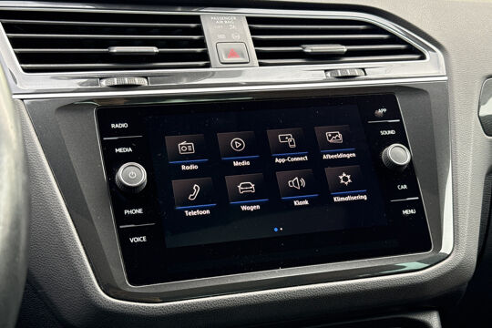 Zoals u mag verwachten van deze Volkswagen Tiguan is hij uitgerust met een reeks aan actieve veiligheidssystemen. Mooi binnen de lijnen van de rijstrook blijven? Het Lane-keeping systeem helpt altijd een handje. Deze Volkswagen Tiguan blijft altijd alert. Zo wordt gebruik gemaakt van forward collision warning. Bij het mogelijke risico op een aanrijding met een voertuig voor u, slaat het systeem alarm. Vermoeid achter het stuur zitten vergroot de kans op een ongeval. Vermoeidheidsherkenning waarschuwt tijdig als u aan een rustpauze toe bent. In deze Volkswagen vinden we verder een hill hold functie, brake assist en bandenspanningcontrolesysteem.